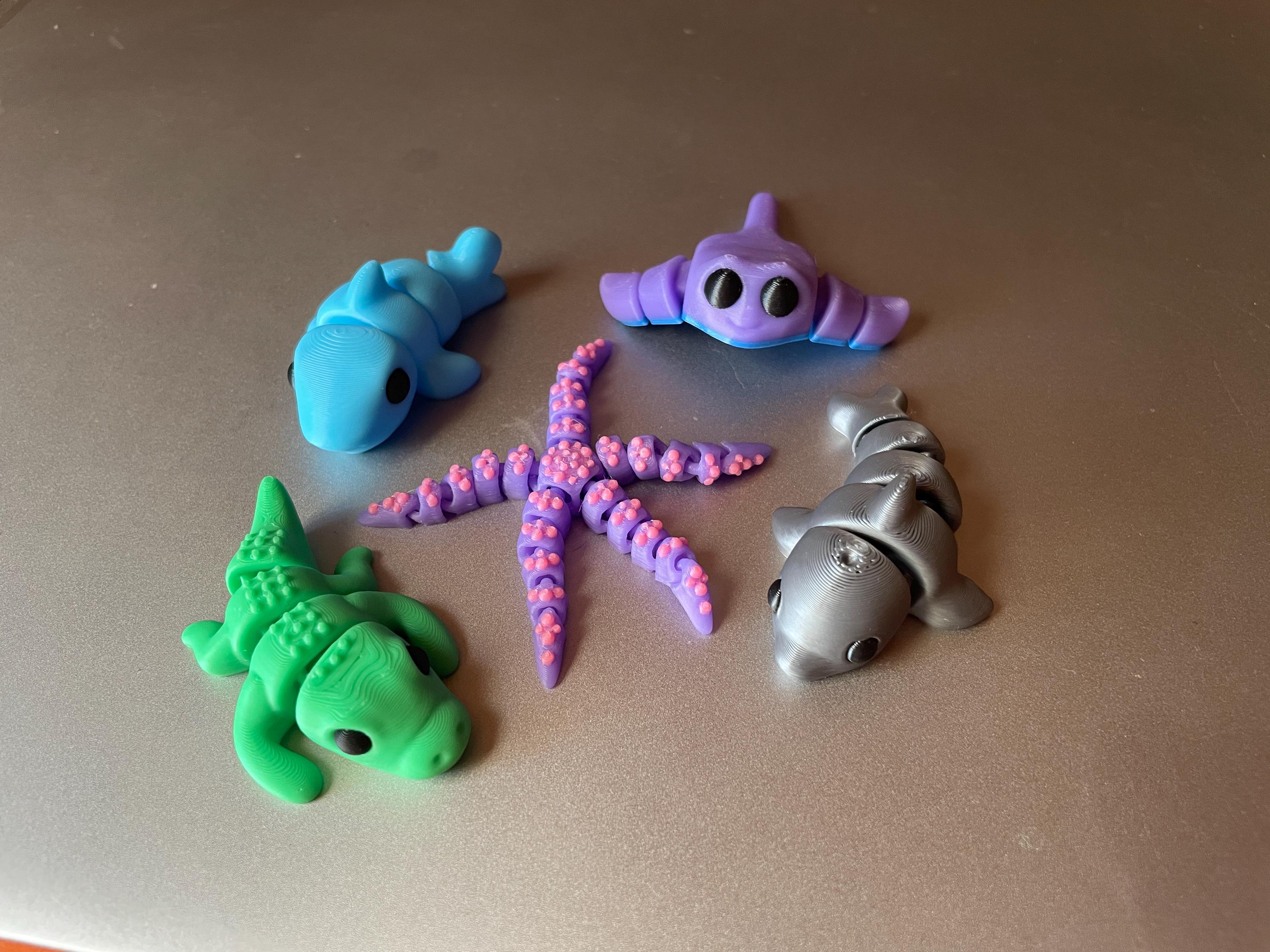 My random bundle was of some very cute water creatures. I got a shark, a ray, a starfish, an alligator/crocodile and a dolphin!